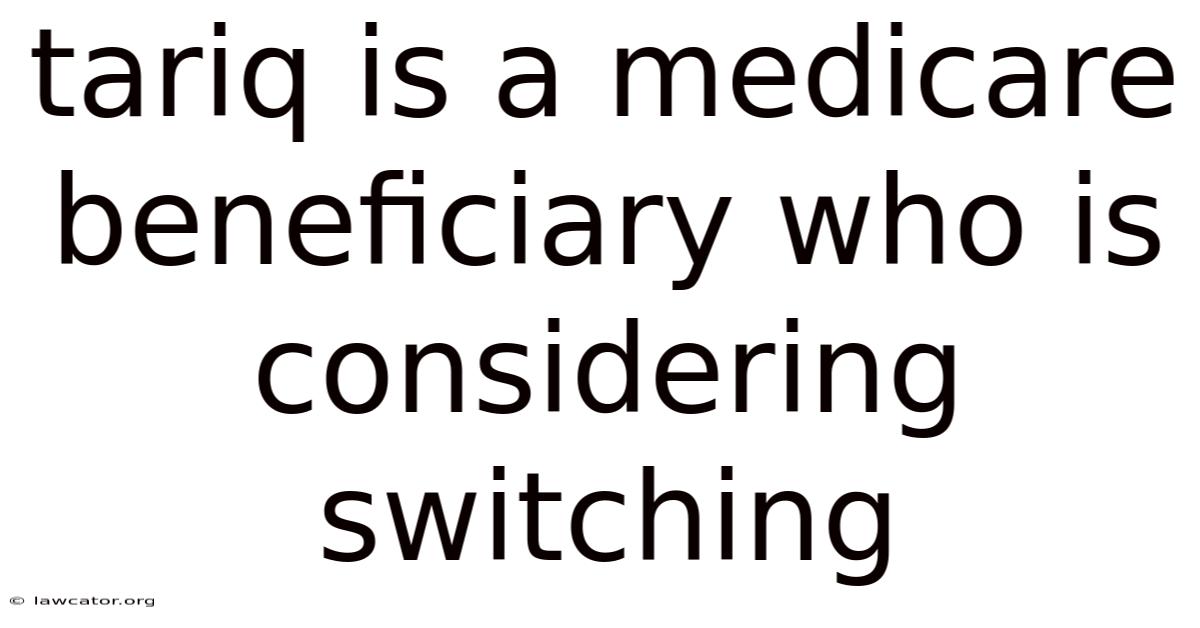 Tariq Is A Medicare Beneficiary Who Is Considering Switching