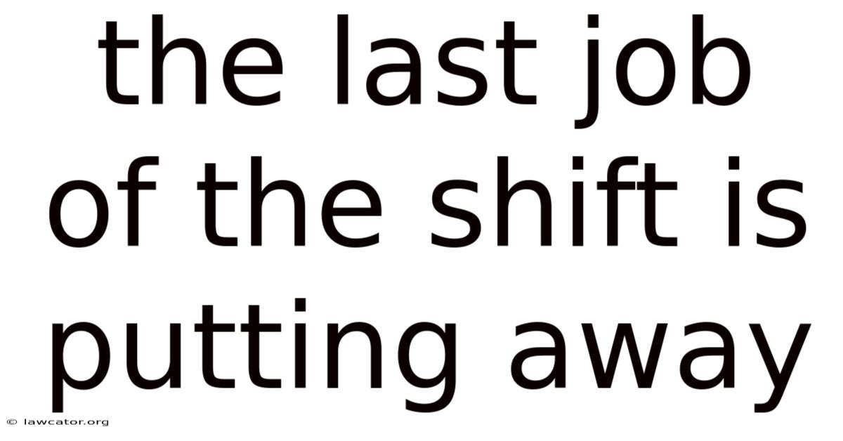 The last job of theshift—putting away—is a pivotal moment that bridges the day’s operational output and the organization’s readiness for tomorrow. By treating this routine as a deliberate, structured practice rather than a perfunctory after‑thought, teams can reap measurable gains in safety, efficiency, and overall workplace morale.